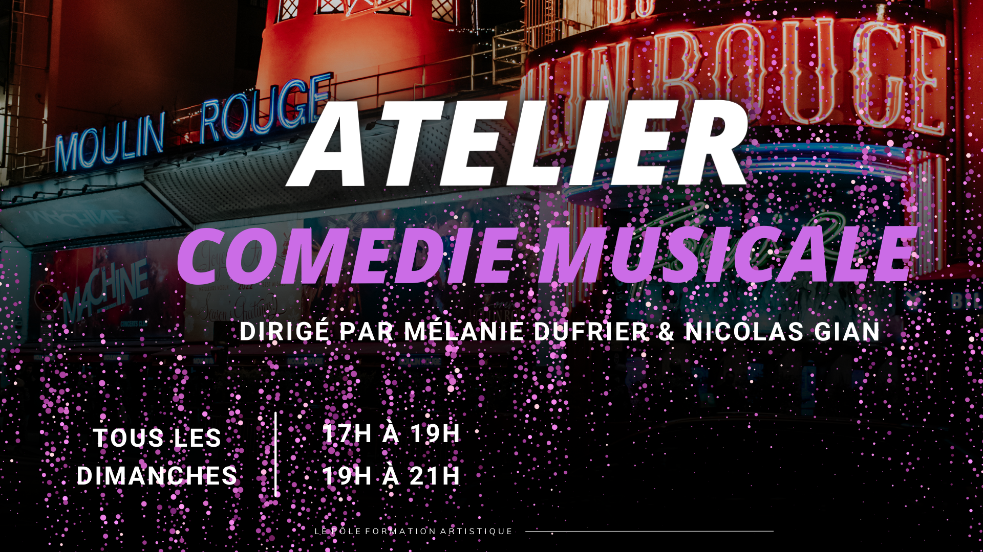 La formation Comédie Musiacle Adultes sera assurée par ses 2 professeurs résidents : Mélanie Dufrier sera en charge de la Danse, et Nicolas Gian assurera les disciplines Chant et Théâtre. La méthode de formation proposée est essentiellement inspirée de la comédie musicale anglo-saxonne, qui met le plus en valeur la pluridisciplinarité exigée par ce métier. Le choix des thématiques travaillées iront d’oeuvres très connues comme Mamma Mia ou Grease à d’autres moins connues du grand public mais plus “éducative” comme Heather’s, Dear Evan Hansen. La Comédie Musicale se situant au carrefour arts du théâtre, de la danse et du chant, le travail de formation se fera donc sur les trois disciplines.