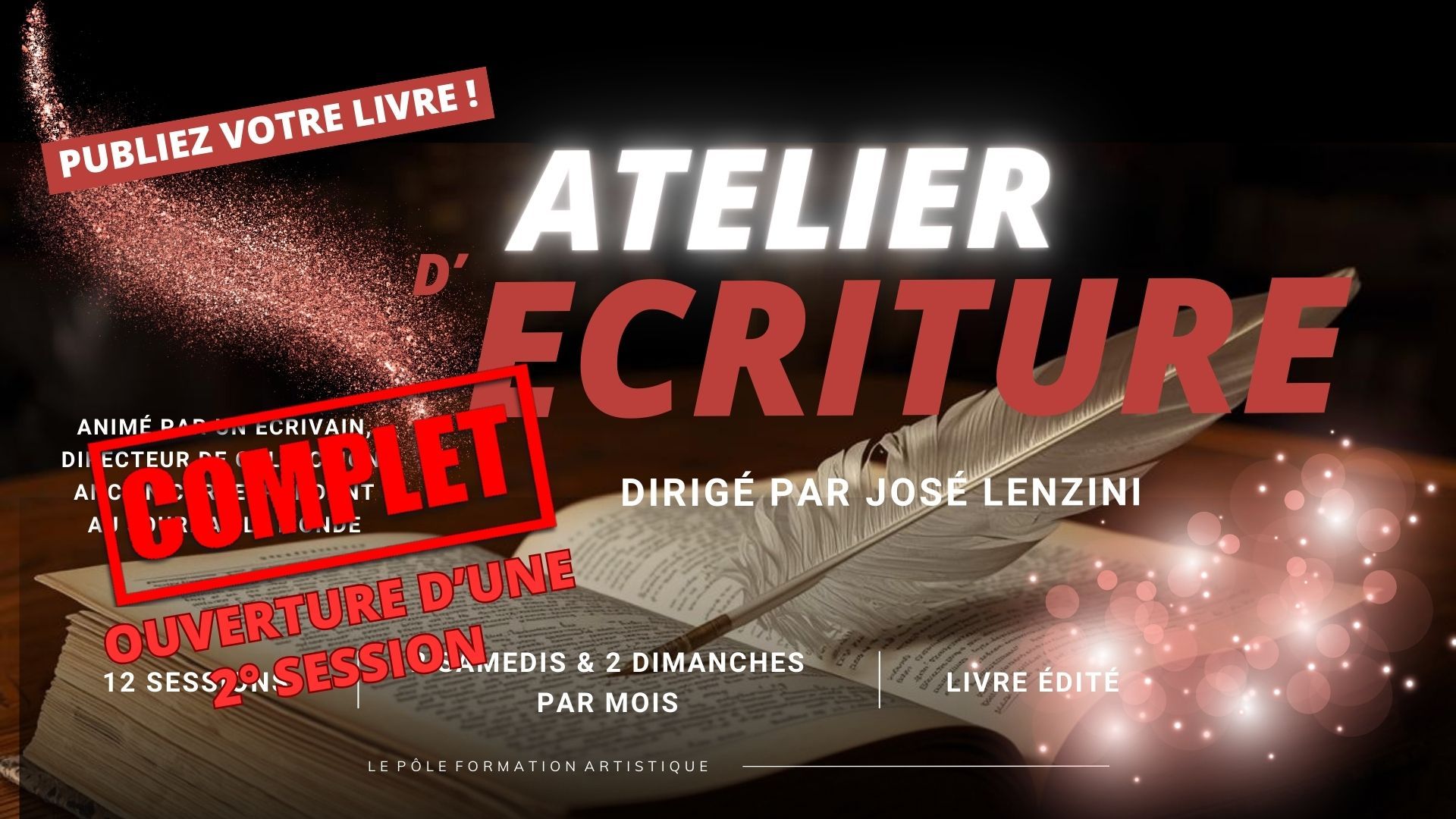Vous rêvez d’écrire ? Pour le plaisir, et plus secrètement avec le désir d'être édité ? C'est désormais possible avec cet atelier qui vous permet de développer vos aptitudes et votre créativité grâce à un accompagnement progressif et adapté par un professionnel reconnu. Qu'il s'agisse d'une biographie, de votre histoire ou de celle d'un proche, d'un roman, d'un conte, d'un recueil de nouvelles, cette formation sera adaptée à votre rythme et à vos perspectives. Fait exceptionnel, l’atelier, programmé sur une douzaine de sessions, se conclura par l’édition papier de votre travail.