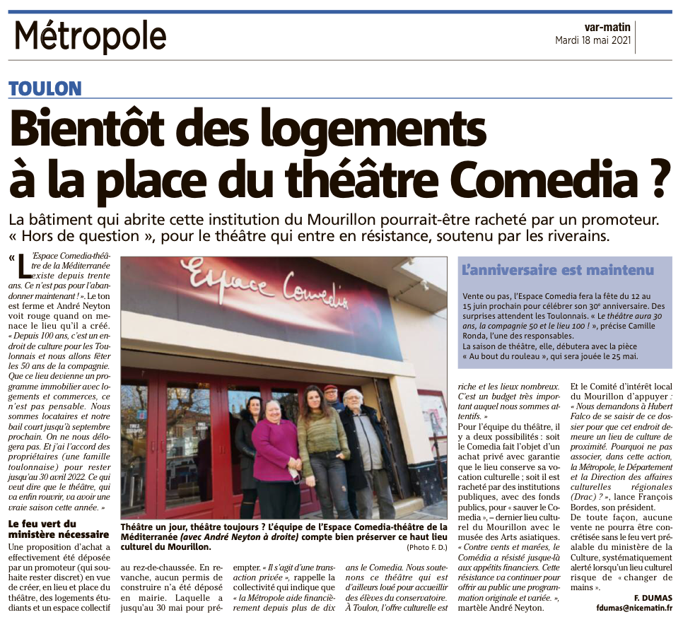 Un promoteur lorgne sur le bâtiment: bientôt des logements à la place du théâtre Comedia à Toulon ?